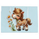 Gift bag with an adorable illustration. A little brown pony happily eating daisies.