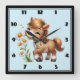 A clock with an adorable illustration. A little brown pony happily eating daisies.