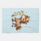 A kitchen towel with an adorable illustration. A little brown pony happily eating daisies.