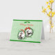 Cute poodle dogs with a green Christmas holly wreath and red bow. Festive and fun for the holidays with customisable wording on front and inside. Merry Christmas can be changed to Happy Holidays or any wording. Inside wording is customisable too, and can be changed or deleted. Or Add Happy New Year, your name or family name, or any wording. Another front option is to keep or delete the front green and white polka dot background. If deleted it will leave a white centre background.