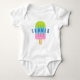 Custom baby jumpsuit for newborn girl or boy. Fun outfit for new baby and parents. Sweet children's clothes design for birth of child or 1st Birthday party. Adorable kids print for lovely daughter, cousin, grandchild, granddaughter, grandson, son, nephew etc. Bodysuit available in many colours like pink, blue, green etc. Girly clothing that can be personalised. Trendy baby shower gift ideas. Create your own one piece suit. Fruity ice lolly popsicle vector art for kids. Ice cream design for infants. Add your own name.