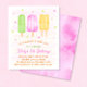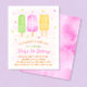 This budget design features a cute watercolor popsicles accented with pink and yellow dots. Click the customise button for more flexibility with adding your text! Variations of this design, premium paper types, additional colours, as well as coordinating products are available in our shop, zazzle.com/store/doodlelulu. Contact us if you need this design applied to a specific product to create your own unique matching item! Thank you so much for viewing a DoodleLulu by 2 june bugs design!