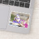 The stick looks amazing. Unfortunately, it would not stick on our suitcase as it was textured. When we found a non-textured (smooth) suitcase, the sticker stuck and looks great. The printing looked awesome.
