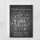 It's a cute pregnancy announcement reading, 'Our dreams have come true. We're due!'. It's made in chalk writing, contemporary style.