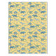 Lots of blue dinosaurs, Tyrannosaurus rex, Spinosaurus, Stegosaurus, Diplodocus and Triceratops on a yellow background.
