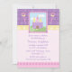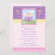 This girl's princess party birthday invitation has a picture of a cute purple castle with two wands on each side. There is a horizontal band of crowns behind it with a purple polka dot design there as well. The bottom half of the invite has a place for you to customise your party information. Copyrights © Sanqunetti Design
