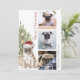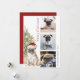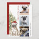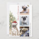 This cute Pug themed Christmas card features a pug wearing a Santa hat sitting in front of a lit Christmas tree. The greeting on the card reads "Merry Christmas" and can be personalised. Further personalise this holiday card with three photos of your pet dog, a signature and the year.