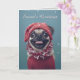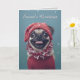 This cute Christmas card features an adorable pug dog dressed for snow in red hat, muffler and coat. You can customise both the greeting on the front and the message inside the card to your liking.
