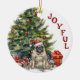 Cute Pug Dog Wrapped in Christmas Lights Ceramic Ornament