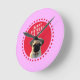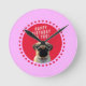 Cute Pug Puppy Dog Happy Birthday Red Dots Pink Round Clock