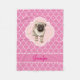 Cute Pug Puppy Pink Quatrefoil with Name Fleece Blanket