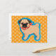 Cute pug with scarf postcard