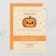 An invitation for a 1st birthday with a cute pumpkin in Kawaii style, polka dots, all in orange colours. You can personalise it for using with any party such as bridal shower, housewarming party, baby shower, Thanksgiving, Halloween or any party you organise!