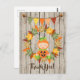 This Autumn Thank You! postcard features a cute baby dressed in a pumpkin costume sitting in a wreath of colourful fall leaves. There is also a bunting banner with acorns and a faux wooden background.