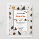 This is cute Boo Halloween illustrations kids party perfect Halloween party invitaion card on pastel blush pink. This invitation card feature is ghosts, pumpkin, cats, spider web, witch hats, broom, spider and bats.