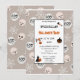 This is cute Boo Halloween illustrations kids party perfect Halloween party invitaion card on pastel blush pink. This invitation card feature is ghosts, pumpkin, cats, spider web, witch hats, broom, spider and bats.