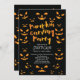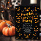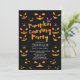Modern Pumpkin Carving Halloween Party Invitation featuring orange Jack O Lantern faces set on a black background with modern "pumpkin carving party" in orange gradient typography. Flip our halloween party invite over to view a matching back for an extra special touch.