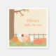 Fall themed baby shower supplies to decorate your party! The paper napkins are in the autumn fall colours of green, orange, brown, yellow and red. It feature a cute baby in orange tee and white diaper sleeping soundly in the pumpkin patch yard with pumpkins and autumn leaves lying around, enjoying nature. Great for babies arriving in the autumn fall season! Personalise with your party message.