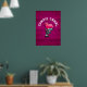 A poster with a cute zombie girl illustration with hot pink hair and deathly green skin. Wearing punk rock themed attire. Her arms outstretched searching for brrraaaains. Curved text says: Zombie Grrrl. Set on a background which is a deep magenta color with a grunge look.