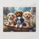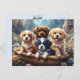 Cute puppies in a basket, custom postcard