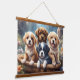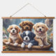 Cute puppies in a basket hanging tapestry