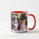 This Christmas Mug features a cute puppy and kitty under the Christmas tree in vintage style. Wonderful, custom gift idea for your loved ones - family and friends. Designed by AIbyMarion
