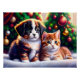 This Poster was designed for the holiday season. The design shows a cute puppy and kitty under the Christmas tree in vintage style. Puppy with black and white fur, kitty with red and white fur. Super cute for pet lovers and any child!