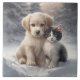 Cute Puppy and Kitten in Snow Portrait Pose Ceramic Tile