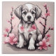 Puppy and cherry blossom illustration