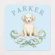 This sweet baby sticker features a cute puppy and can be personalised with a name.