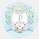 Cute Puppy Blue Ribbon Crest | Baby Boy Classic Round Sticker
