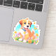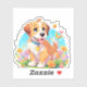 A sticker with a picture of a cute puppy sitting amongst the flowers. He looks very happy to be surrounded by flowers and butterflies.The perfect gift to give those who love puppy dogs. Contains generative content.