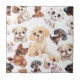 A cute Puppy Dog pattern design with watercolor illustrations of different dog breeds such as , Dalmatian, German Shepherd, Bulldog, Pug, Poodle, Spaniel. A lovely cute ceramic tile is a great wall decor for dog lovers, dog groomers, or children's bedrooms and nurseries. Background colour can be added if needed.