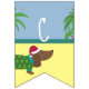 This fun bunting features a cute dachsund on a beach with palm trees. Check out our matching tableware and invitations to make your Christmas in July celebrations unique.