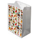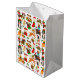 A great way to give gifts for a dog lover (or your dog!) This cute puppy dog cartoon design pattern makes a fun and colourful gift bag. Several dog types including pugs and dachshunds. With Christmas holly and presents.