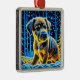 Cute puppy dog lab playing outside on a snowy night Christmas festive holiday ornament.