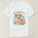 A t-shirt with a picture of a cute puppy sitting amongst the flowers. He looks very happy to be surrounded by flowers and butterflies.The perfect gift to give those who love puppy dogs. The slogan is 'Little paws, Big love'. Contains generative content.