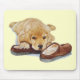 cute puppy golden retriever dog cuddling slippers mouse pad