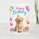 A cheerful and heart-melting birthday design featuring an adorable golden puppy wearing a colorful party hat, surrounded by bright balloons, playful confetti, and festive streamers. A cupcake with a glowing candle and neatly wrapped gifts complete the joyful scene.