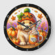 Cute Puppy Pumpkin Season Fall Theme Large Clock