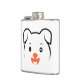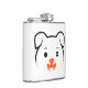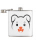 The flask itself is fine. It’s a cheap flask, obviously bought in bulk, however am prepared to overlook that. Given that it is a personalized item, I would have liked to have seen gift boxing instead of the generic packaging. Terrible printing, and/or quality. It’s a cheap, tacky vinyl. It is not cut straight and is also applied in a way that it is overhanging the bottom, causing the glue to catch on items and it will eventually roll and tear, damaging the wrap.