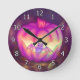 Cute Purple Bat Inside Carved Jack-o'-Lantern Round Clock