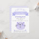 NewParkLane - Kids Birthday Invitation for young girl or a baby girl, with a cute purple cat. On the back a fun, lavender striped background.