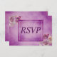 A cute purple RSVP invitation. This purple flower themed wedding response card is appropriate for weddings of all seasons. Featuring a purple background there is a purple flower, "RSVP" is written at the top in lovely purple font. The back continues with important information on a purple background. Personalise yours today!
