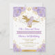 Cute Purple Gold Princess Dinosaur Girl Birthday Invitation