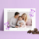 Cute Valentine's Day photo card featuring your horizontal photo in the middle adorned with light and dark purple hearts at the corners. Personalize the design by adding your name, the year, and a custom greeting. The card reverses to display an additional photo.