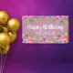 Cute Purple Pink Floral Happy Birthday Name Banner