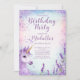 Cute Purple rainbow Glitter Floral Unicorn Birthday Invitation