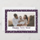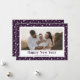Custom purple photo New Year card featuring a beautiful festive script title and little stars on a plain purple background on the front and at the back. The background can be changed to any colour. Easily personalise this minimalist purple photo holiday card with your photo and family name.