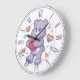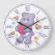 Cute Purple Teddy Bear Hugging Heart Valentine Nur Large Clock